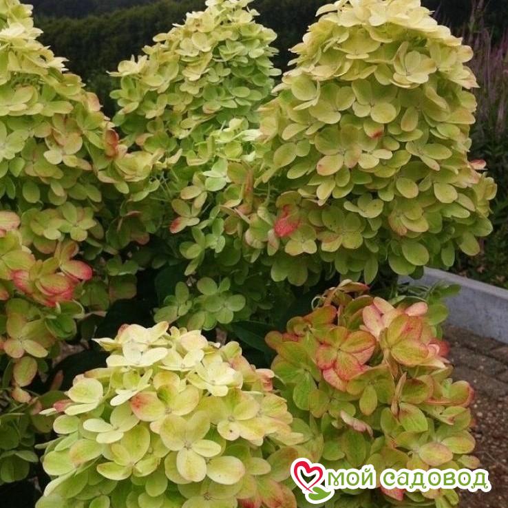 Читать далееГортензия Граффити — представляет собой карликовый кустарник до 1 м высотой и шириной. Жесткие побеги, прямые. Листья яйцевидные, темно-зеленые, с обеих сторон грубо опушенные. Цветки исключительно плодущие, собраны в конусообразные соцветия на верхушках побегов. Соцветия вырастают до 25-30 см длиной, первоначально соцветия светло-зеленые, с белоснежными с аквамариновыми верхушками, в конце лета цветки розовеют, на цветках хорошо видны зеленые и белые прожилки. Почти все однолетние побеги увенчаны соцветиями. Цветение начинается в июле и продолжается до сентября, после цветения цветки высыхают, оставаясь украшением куста в течение осени и зимы.